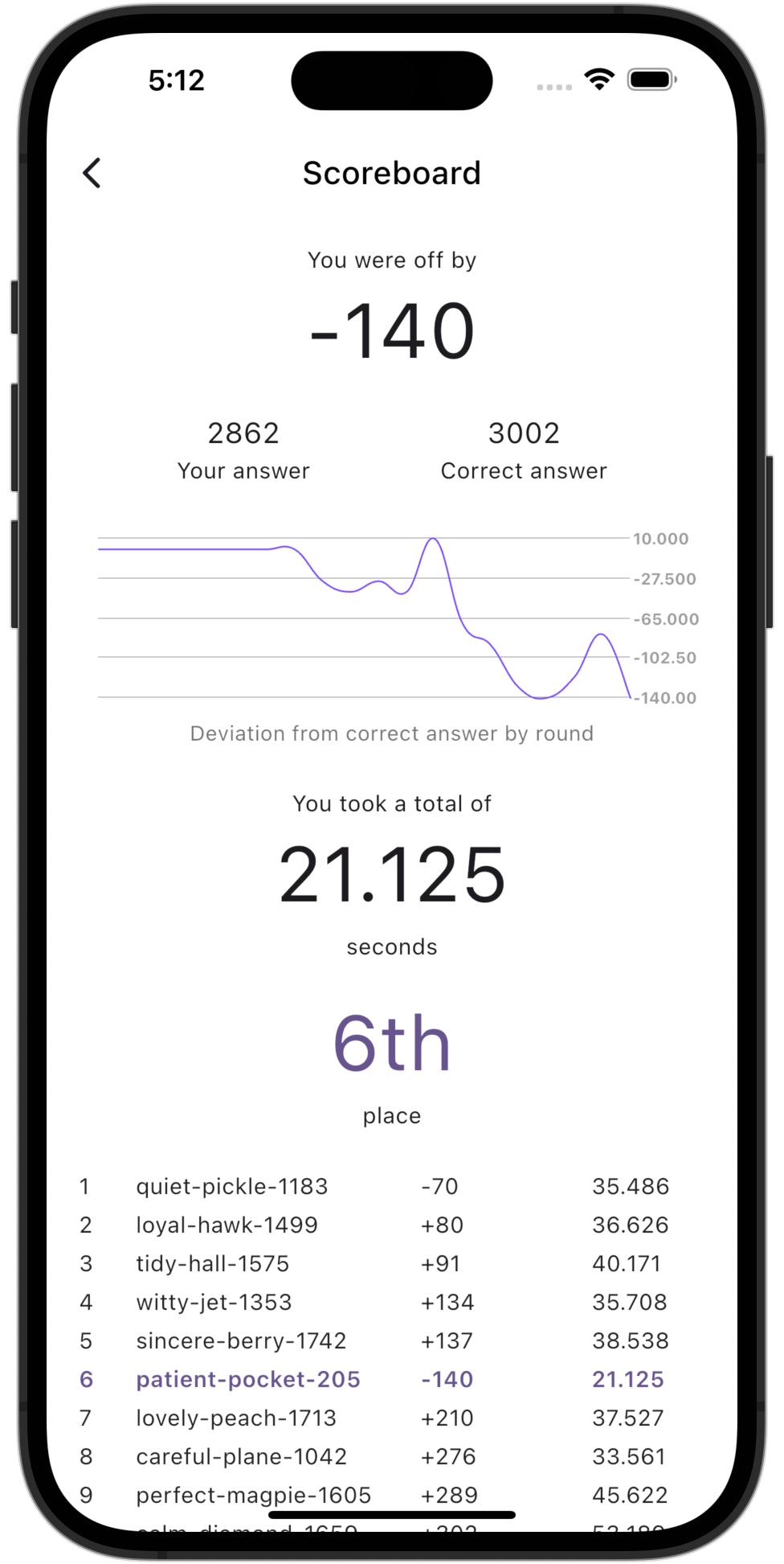 Compete with other players to correctly total up numbers across time based rounds and see who gets closer. Ties are broken based on who is faster so think fast!