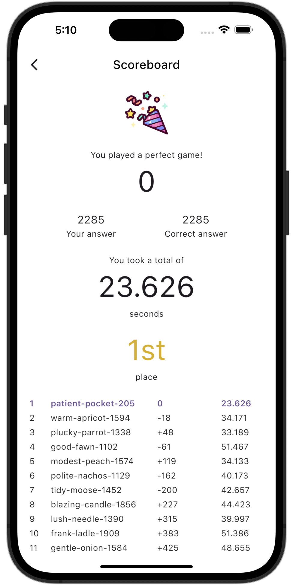 Compete with other players to correctly total up numbers across time based rounds and see who gets closer. Ties are broken based on who is faster so think fast!